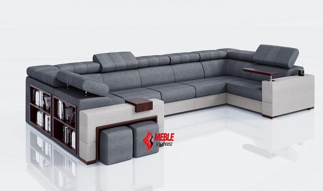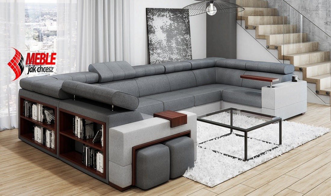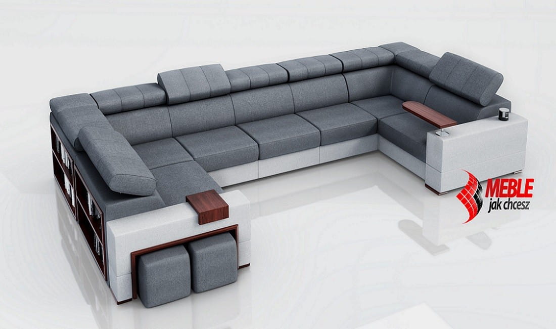 Ten mebel posiada bok z pufami, który zachwyca swoją funkcjonalnością nie jedną osobę. Dwie zgrabne pufy to idealna opcja dla większych rodzin. Sprawdzi się nie tylko jako dodatkowe miejsce do siedzenia (np. podczas wizyty gości), ale również jako podnóżki podczas oglądania telewizji. Bez względu na to czy ten dodatek jest schowany w bok czy wyciągnięty na zewnątrz całość prezentuje się równie elegancko co i nowocześnie.