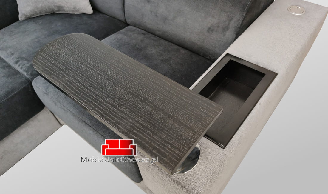 Obracany stolik to wygodne miejsce do pracy przy laptopie, czytania książki czy zjedzenia posiłku W każdej chwili można go złożyć do pozycji początkowej i znów staje się częścią boczku. Jest możliwość wykonania pod nim małego schowka na piloty czy kabel ładowania telefonu.