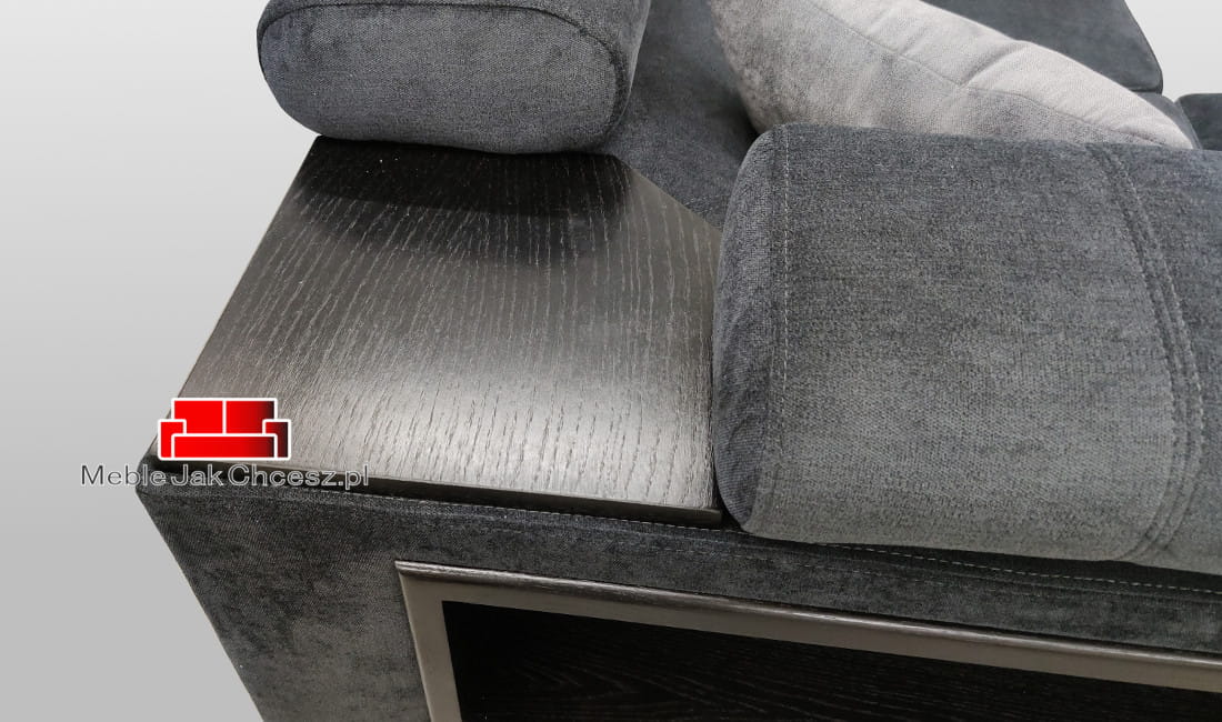 Dodatkowo narożnik posiada deskę na boczku oraz drewniane elementy w rogach mebla!