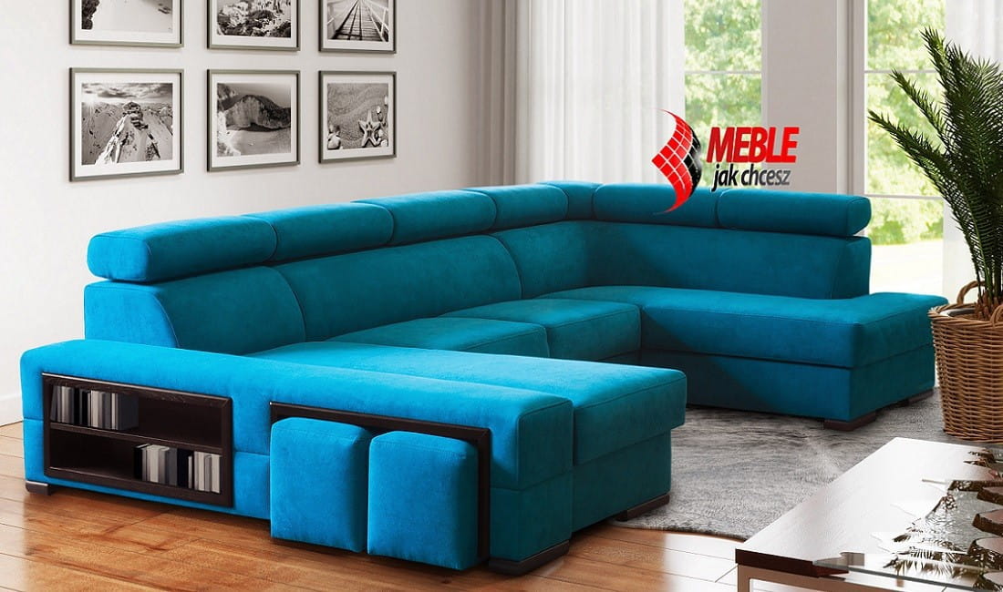 Ten mebel posiada bok z pufami, który zachwyca swoją funkcjonalnością nie jedną osobę. Dwie zgrabne pufy to idealna opcja dla większych rodzin. Sprawdzi się nie tylko jako dodatkowe miejsce do siedzenia (np. podczas wizyty gości), ale również jako podnóżki podczas oglądania telewizji. Bez względu na to czy ten dodatek jest schowany w bok czy wyciągnięty na zewnątrz całość prezentuje się równie elegancko co i nowocześnie.