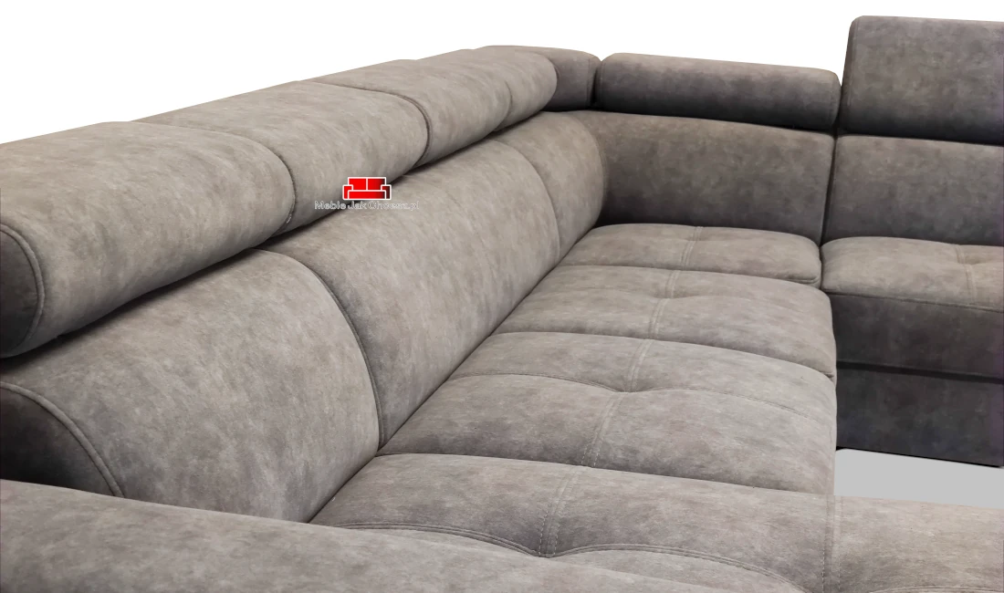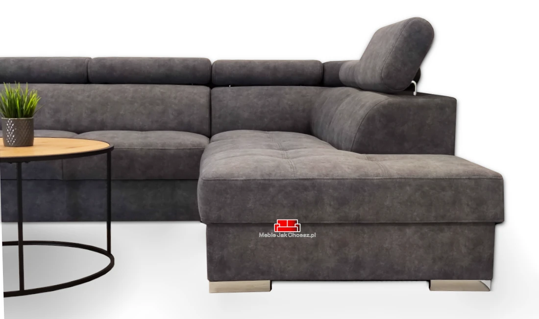 Możliwość personalizacji – wybierz stronę narożnika (lewą lub prawą), szerokość (od 160 cm), rodzaj tkaniny, kolor, nóżki oraz wzmocnienie konstrukcji. Dzięki temu dopasujesz mebel idealnie do swojego wnętrza i stylu życia.